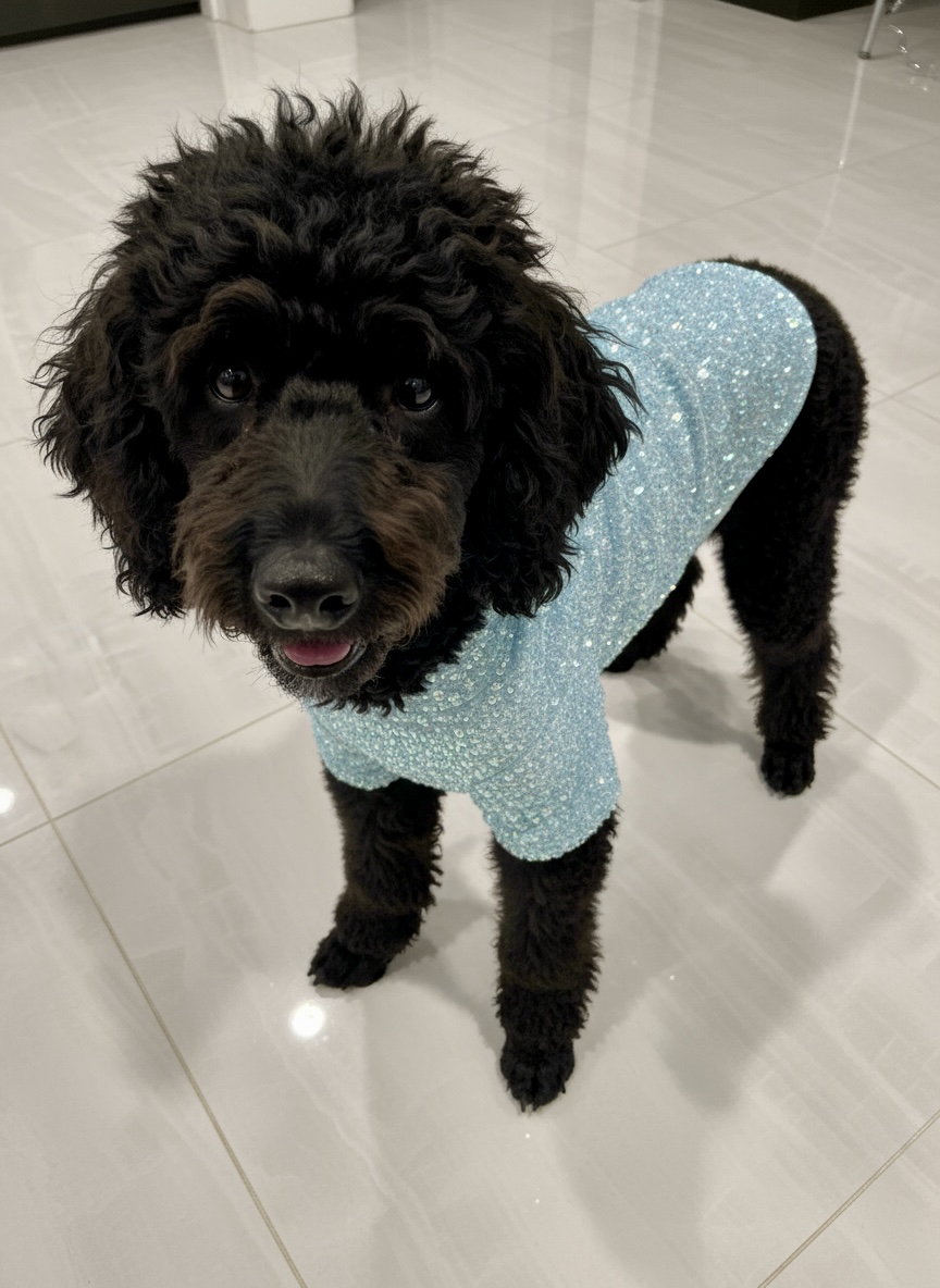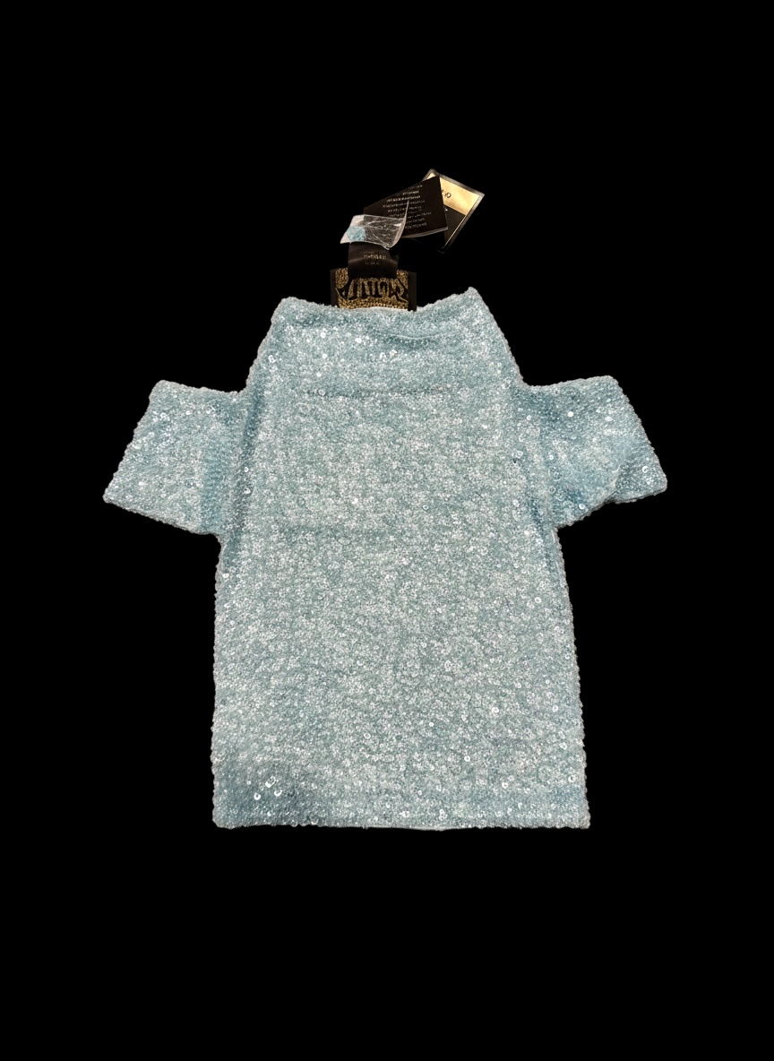Beautiful baby blue hand beat a dog sweater. Perfect for your high class pooch! One extra small, two small and two medium available