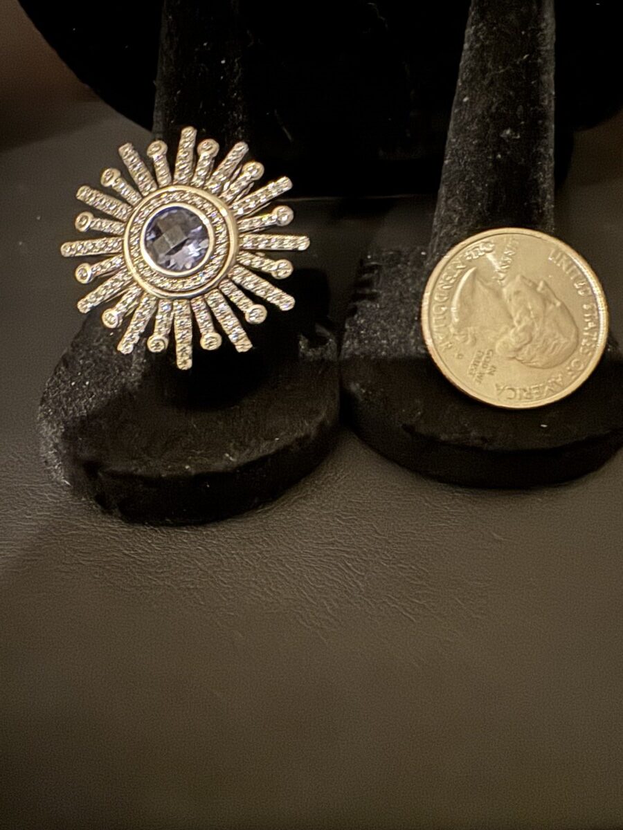 This is a beautiful genuine amethyst Sunburst ring. Set in an intricate sterling silver setting. Very classy! Size 7, and can be resized by a jeweler