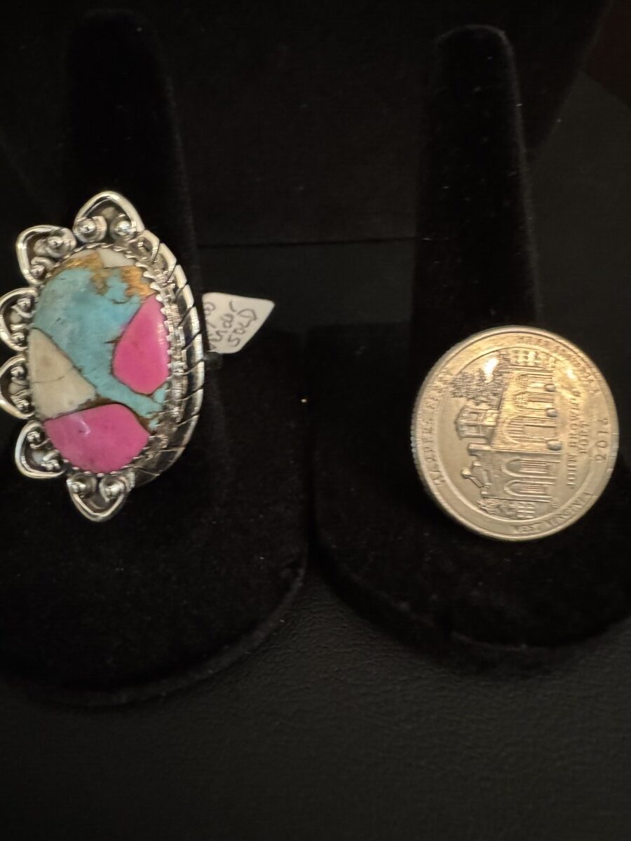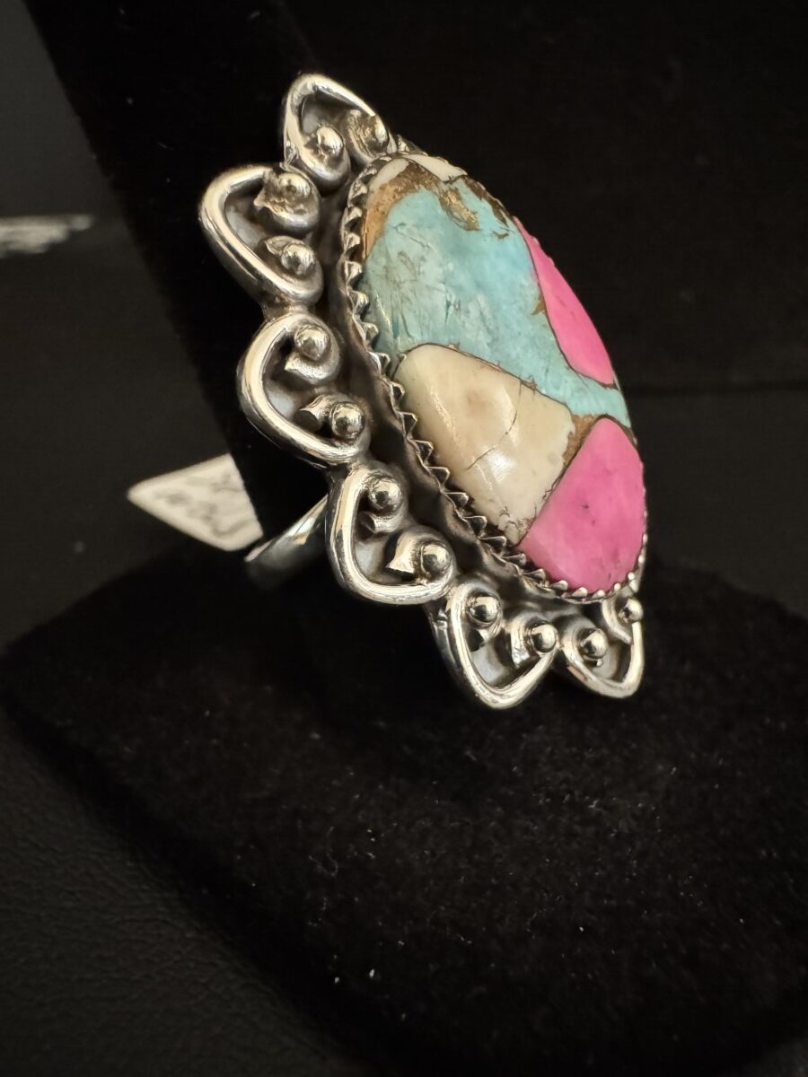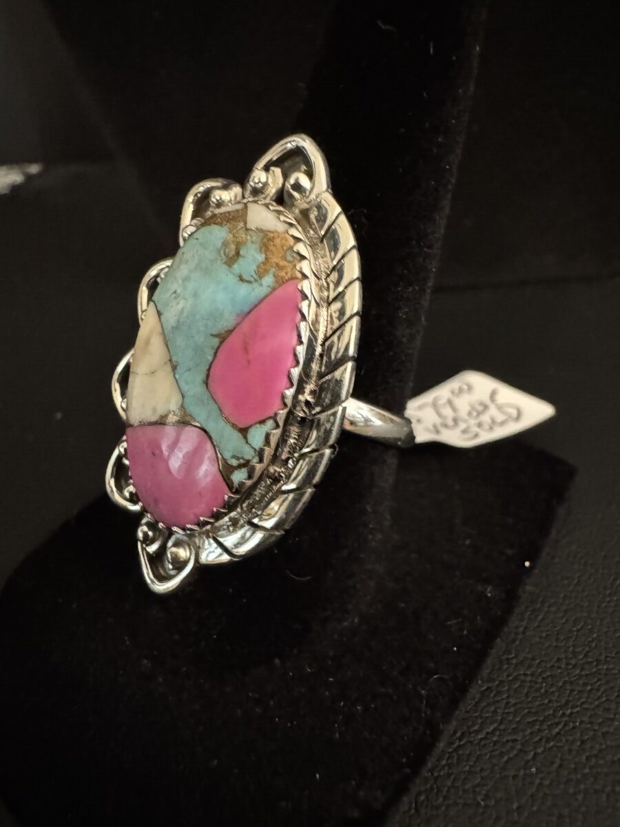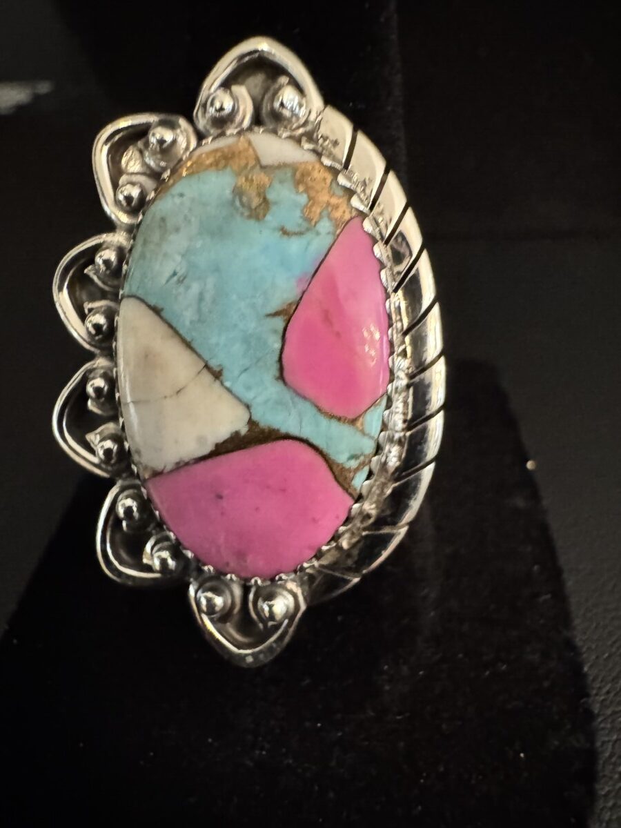 Beautiful sterling silver and cotton candy. Turquoise ring. Great play on Colors will add a touch of elegance to any outfit.