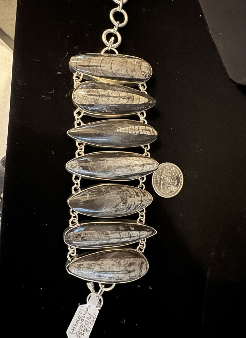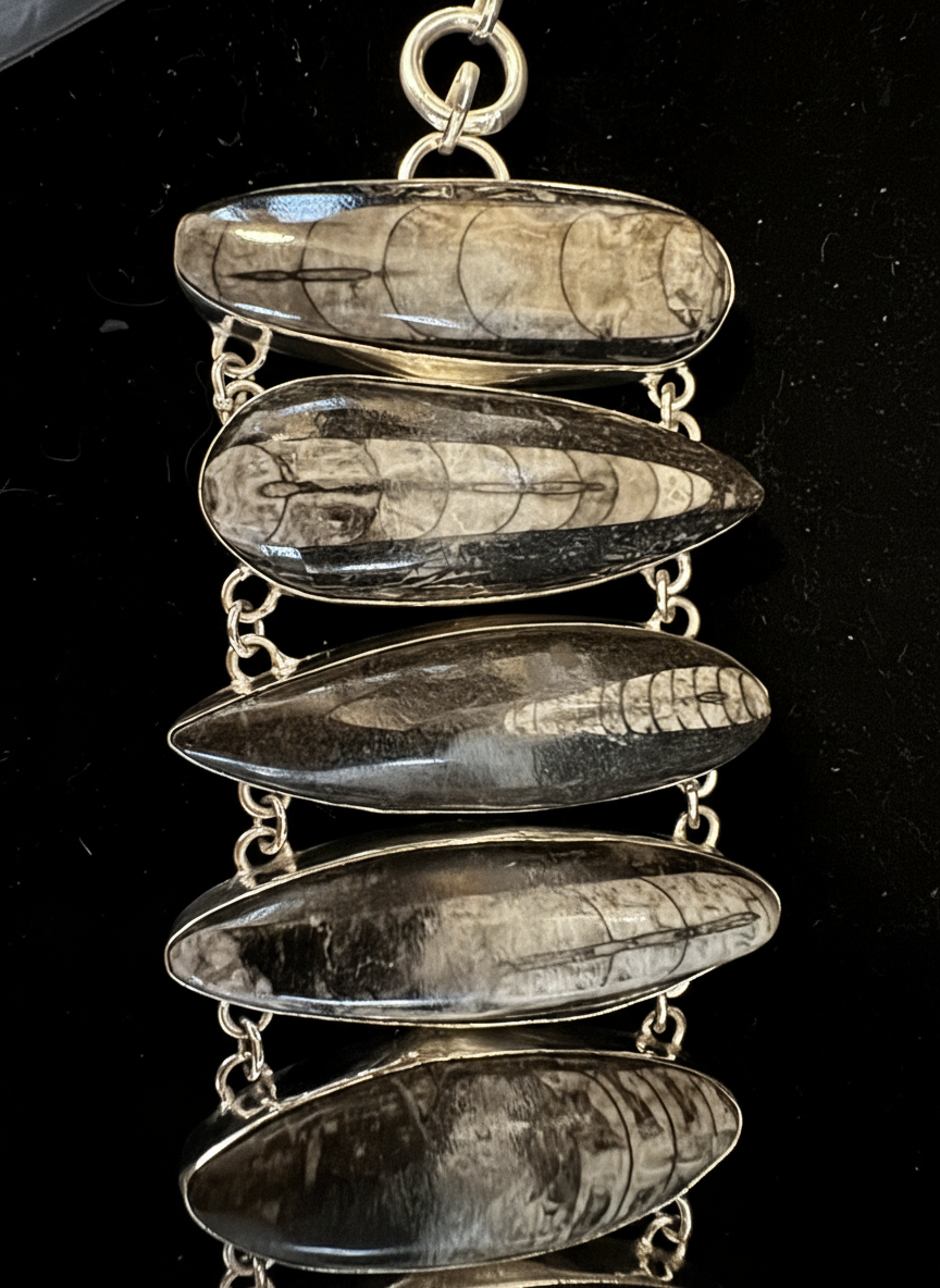 Very unusual fossil set in sterling silver. This is an elegant statement piece