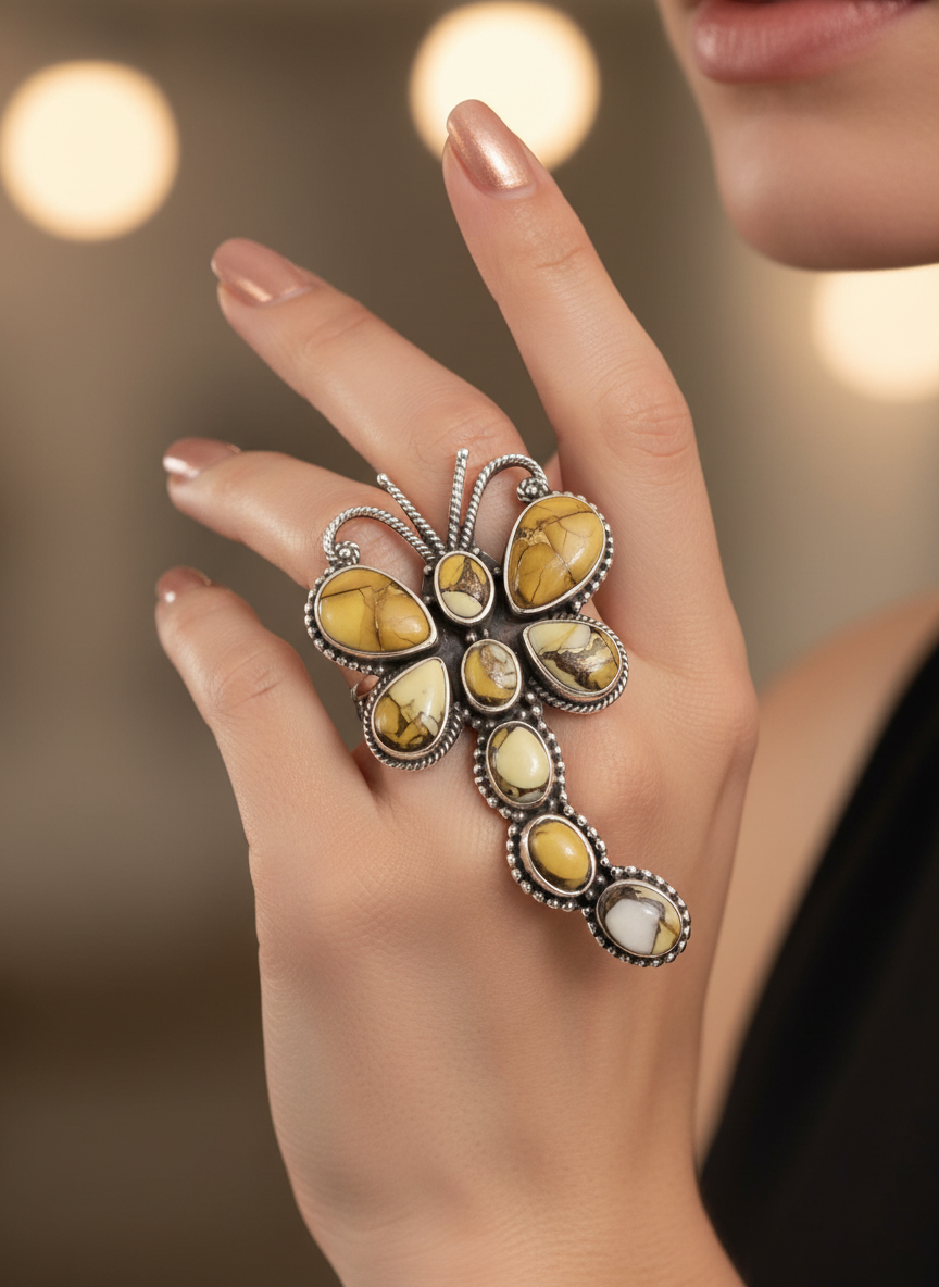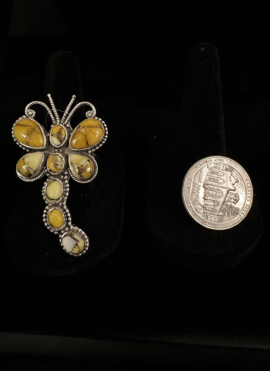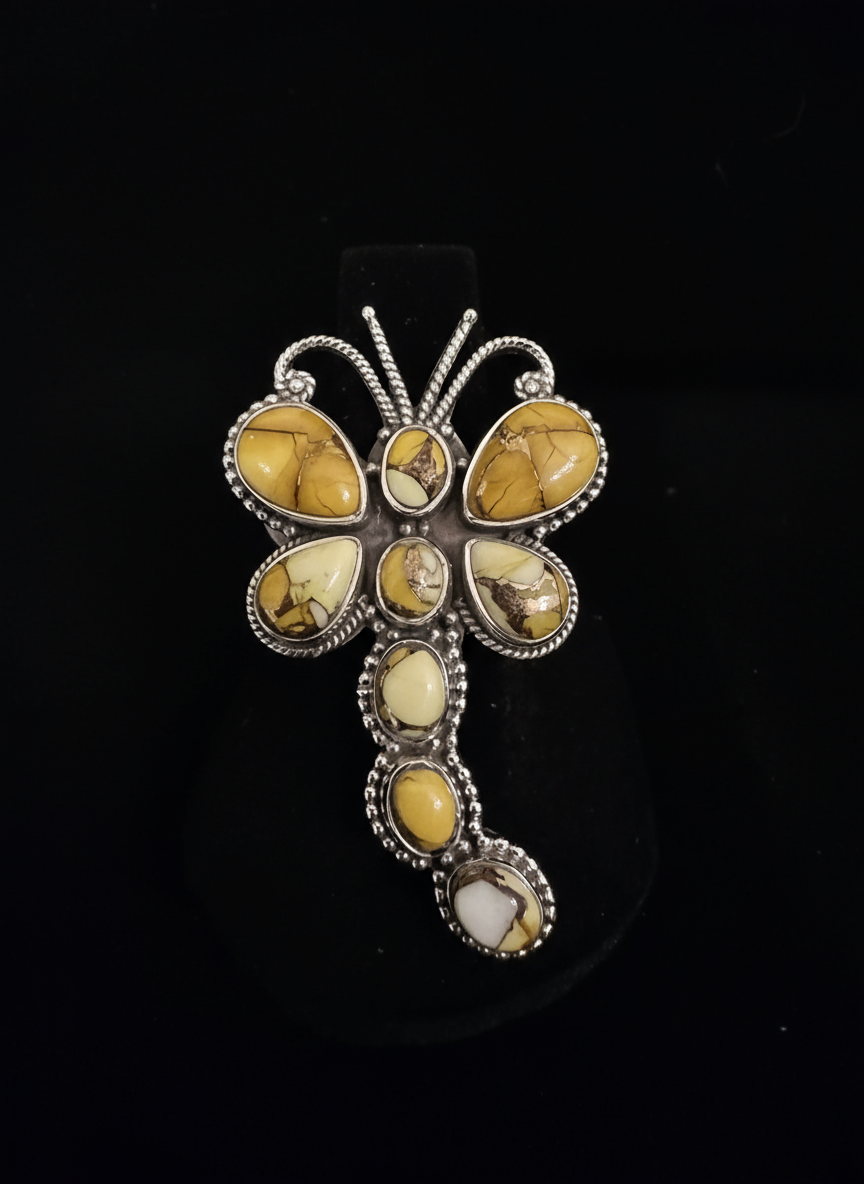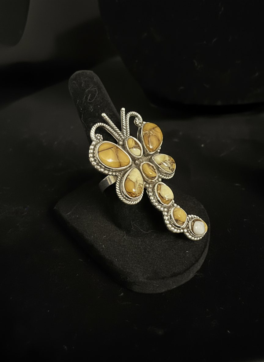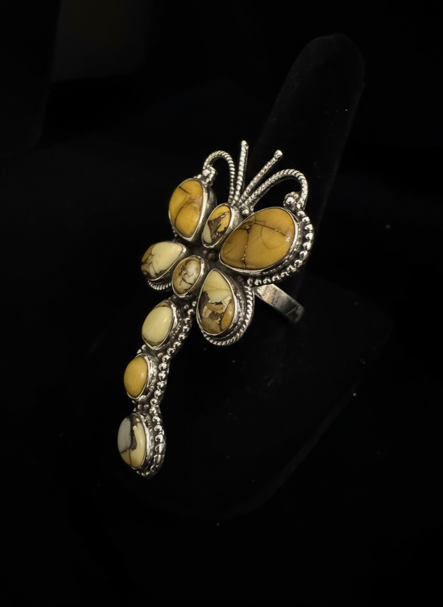 Beautiful honey Dahlia turquoise ring set in sterling silver setting. Size 8, and can be sized by a jeweler