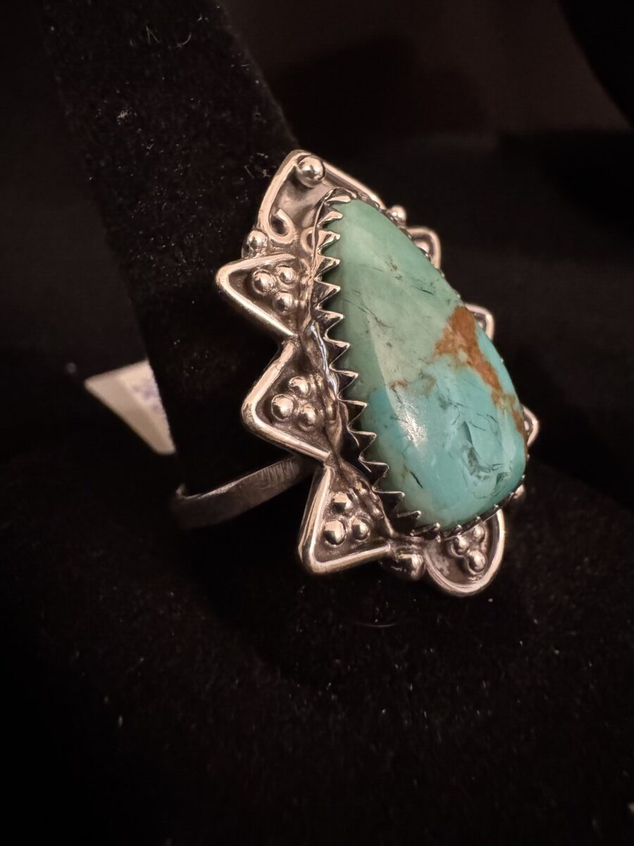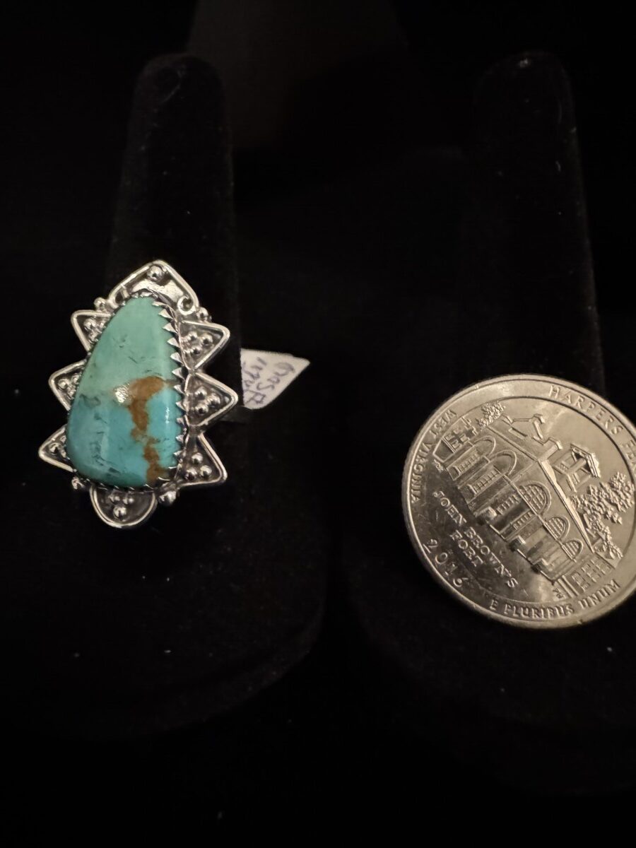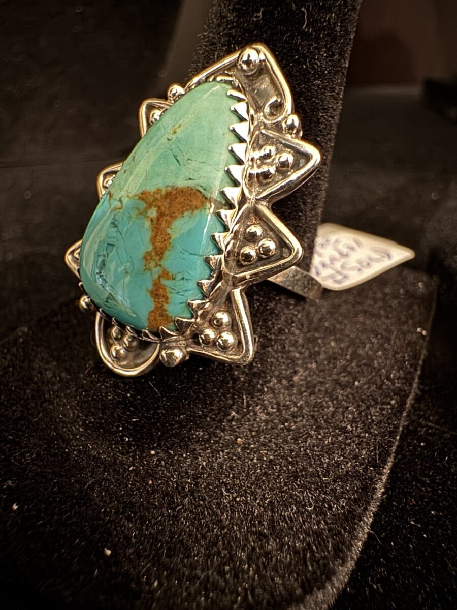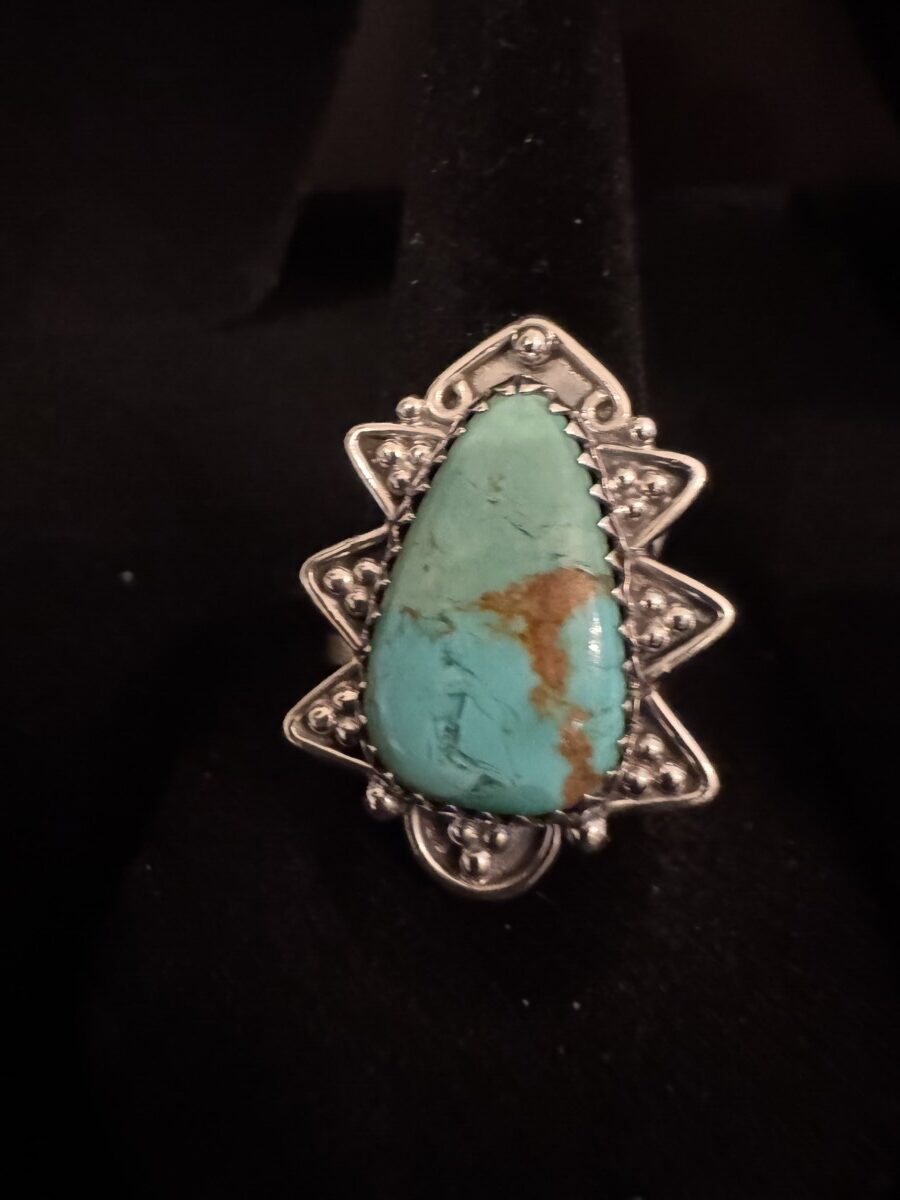 Beautiful pear shaped turquoise in a genuine sterling silver setting adjustable size