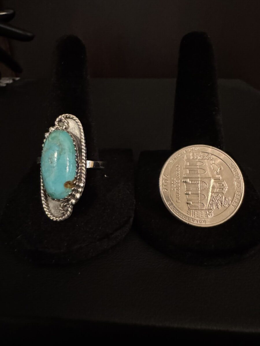 Very elegant, turquoise and sterling silver ladies ring. Oval shape. Adjustable size you will love this one!