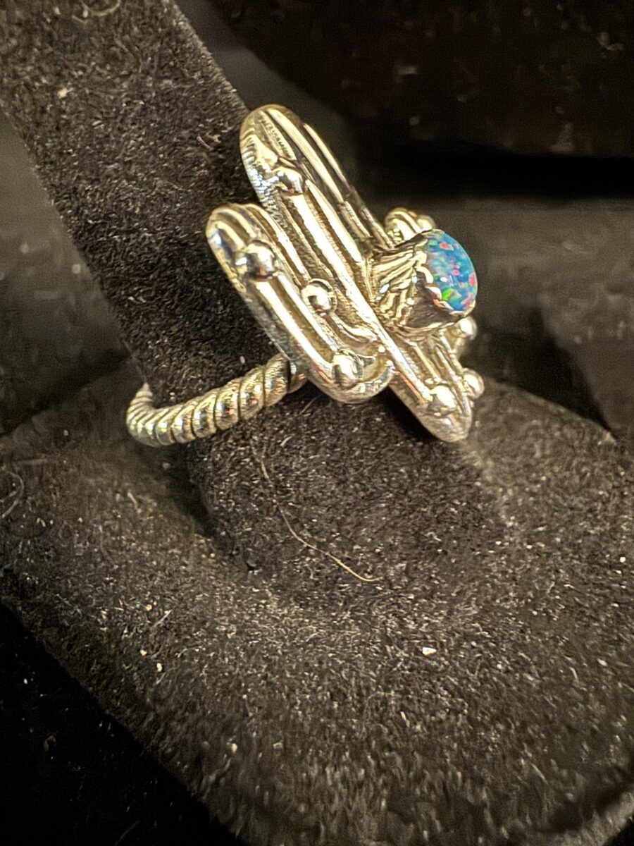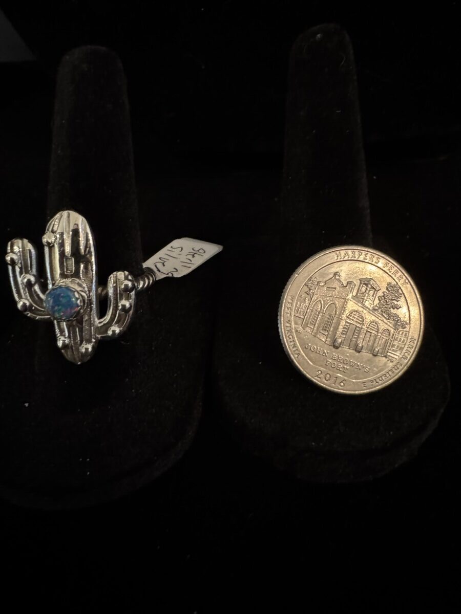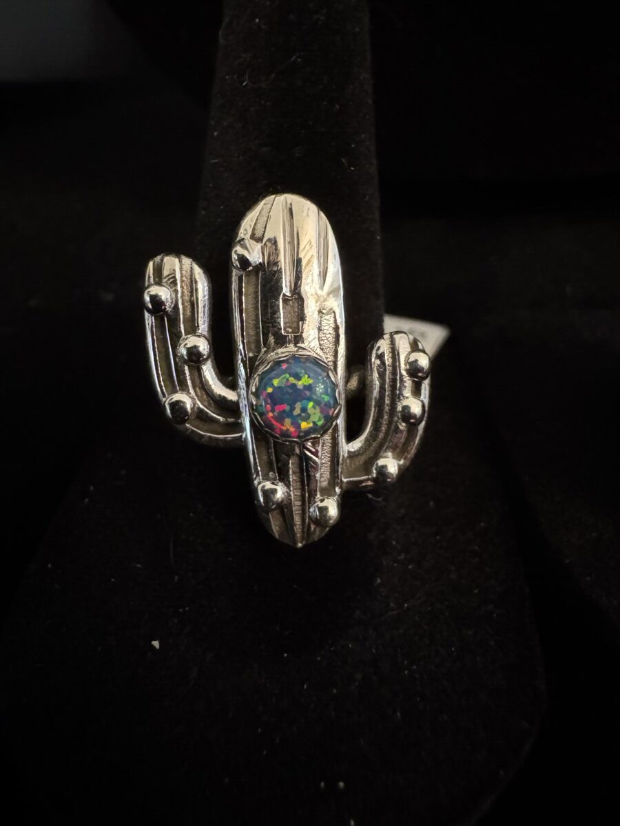 This is a beautiful sterling silver cactus ring featuring a lovely opal stone. Size 7, but can be adjusted a little at the bottom