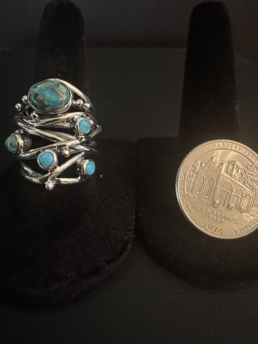 THIS IS A BEAUTIFUL STERLING SILVER (925) MASTERPIECE WITH GENUINE TURQUOISE STONES