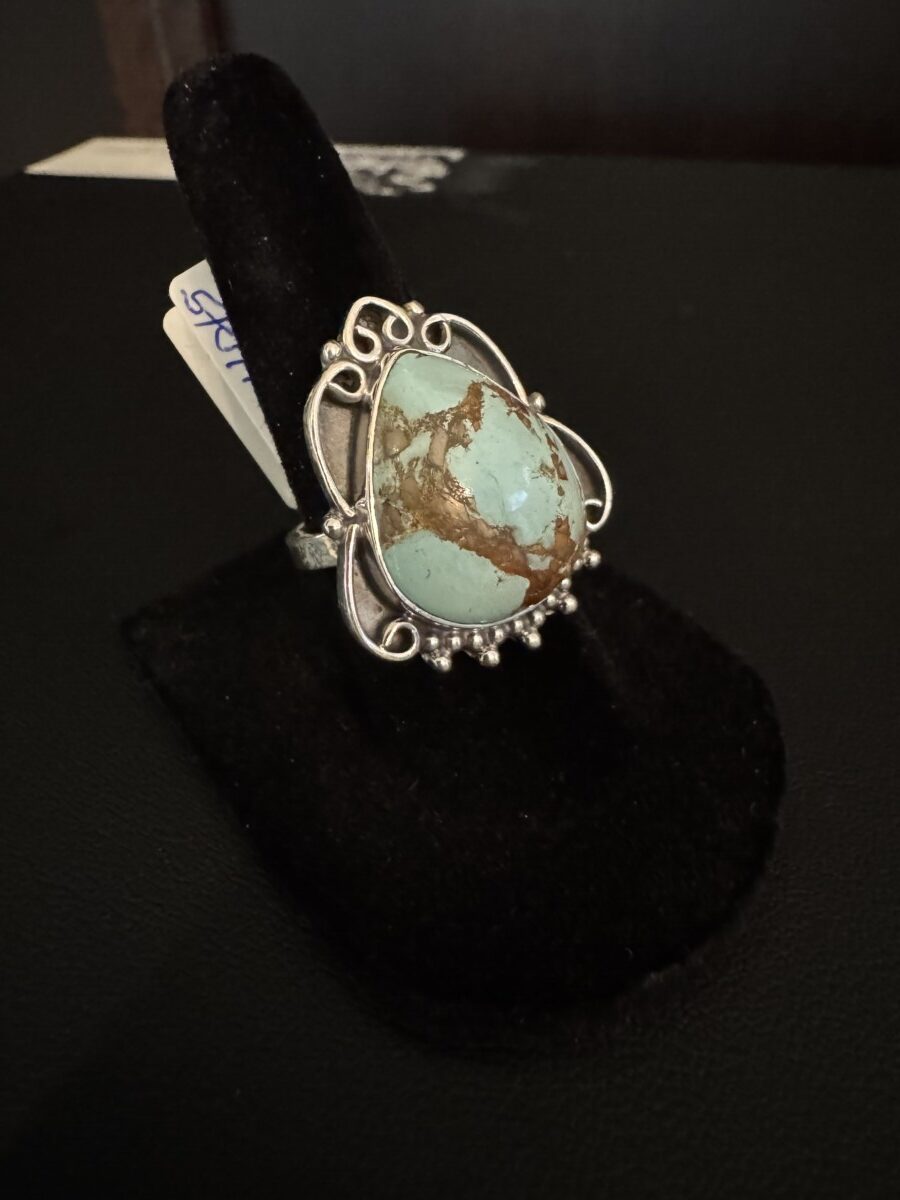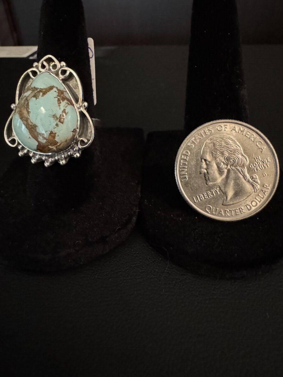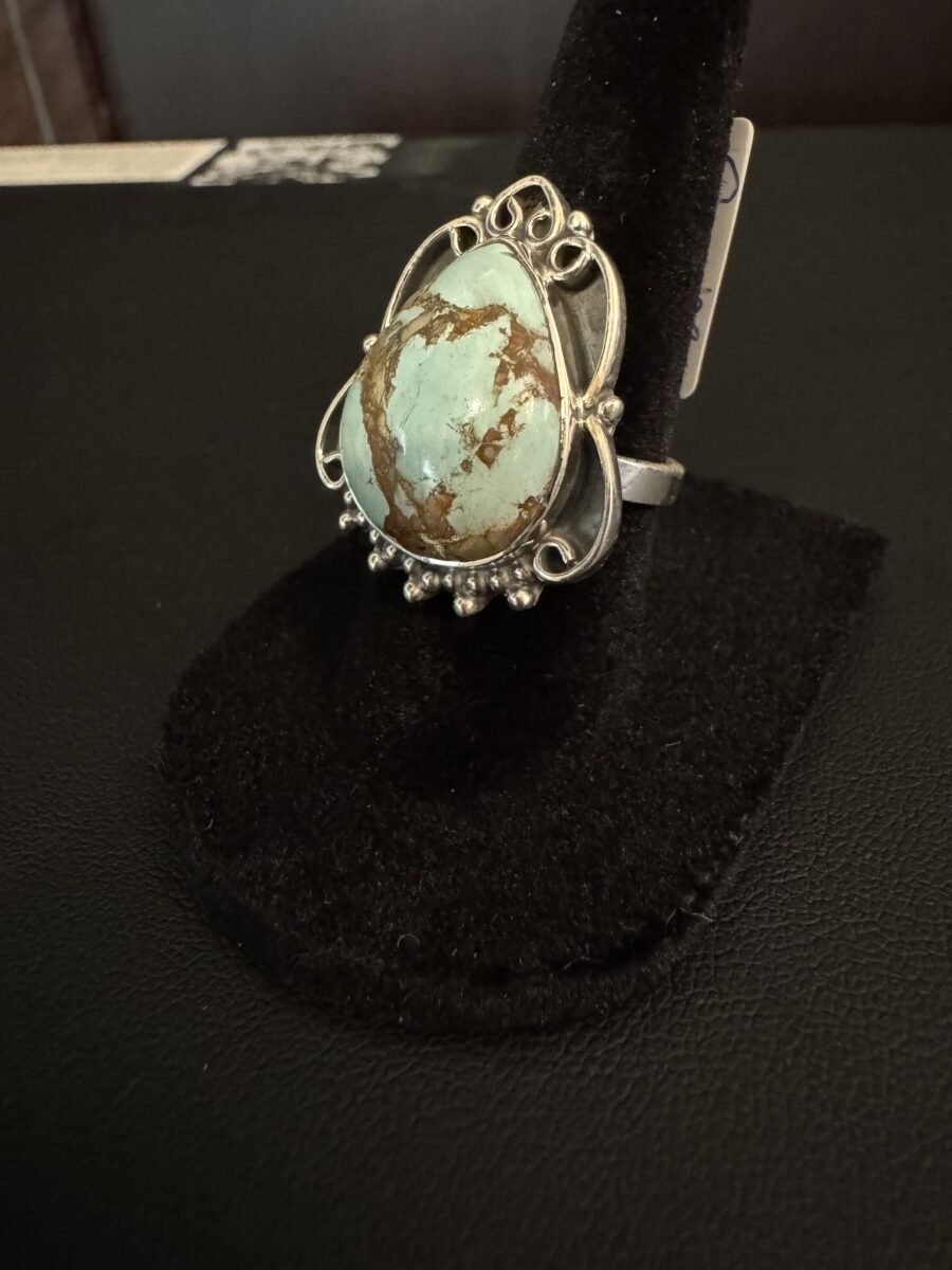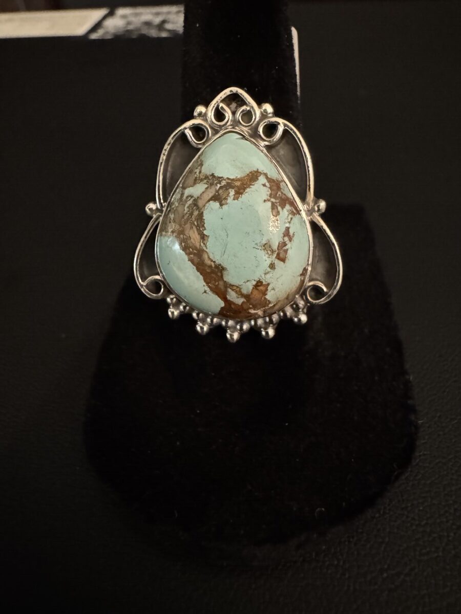 This beautiful turquoise is set in a lovely sterling silver setting. You will love wearing it and owning it!