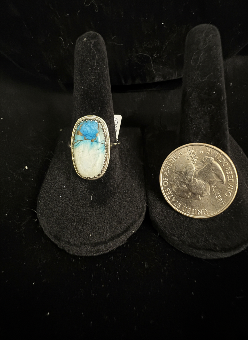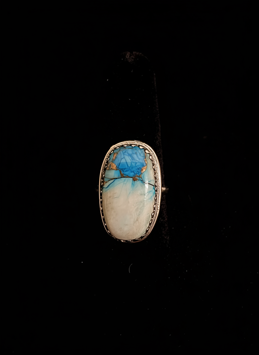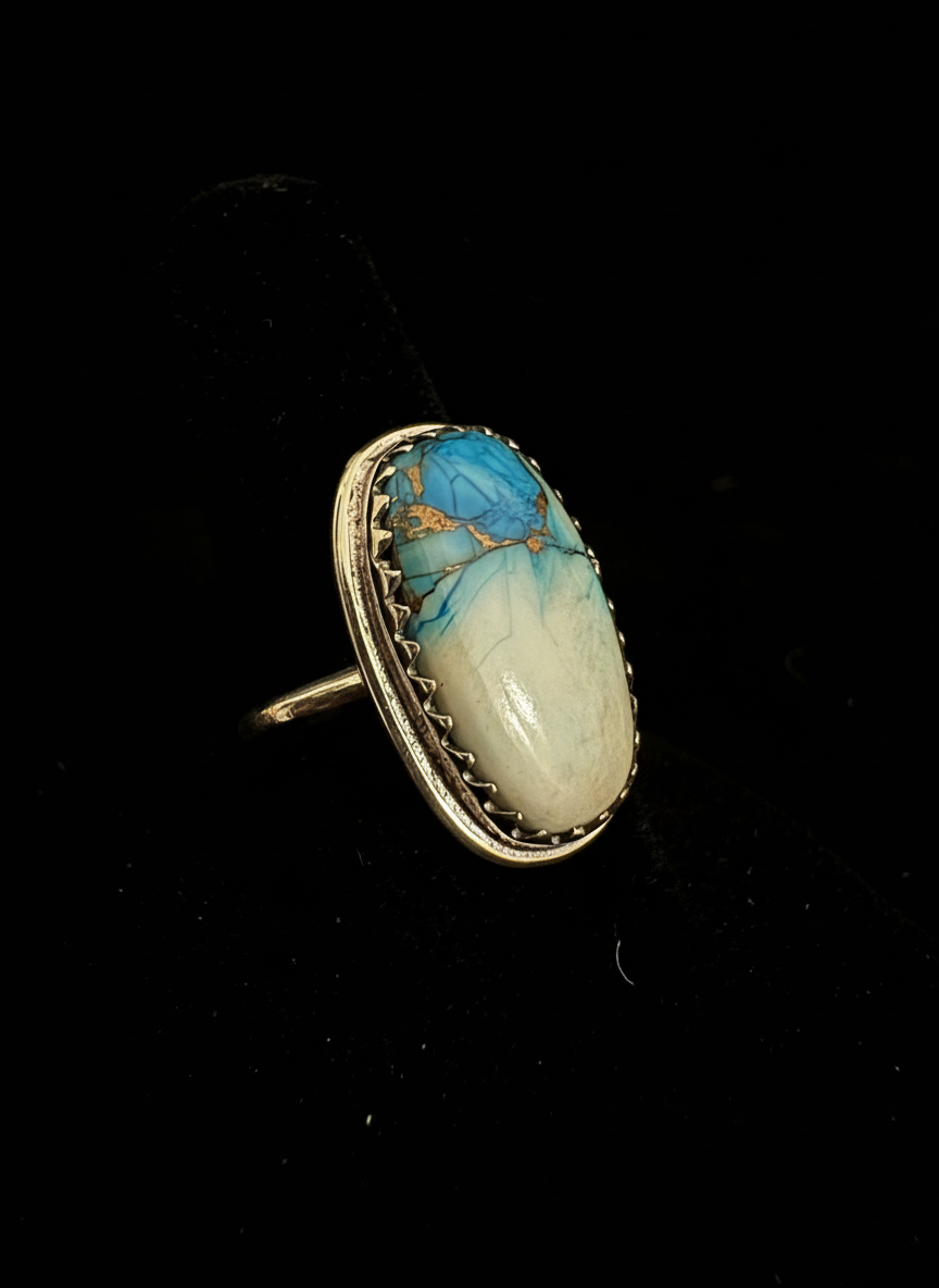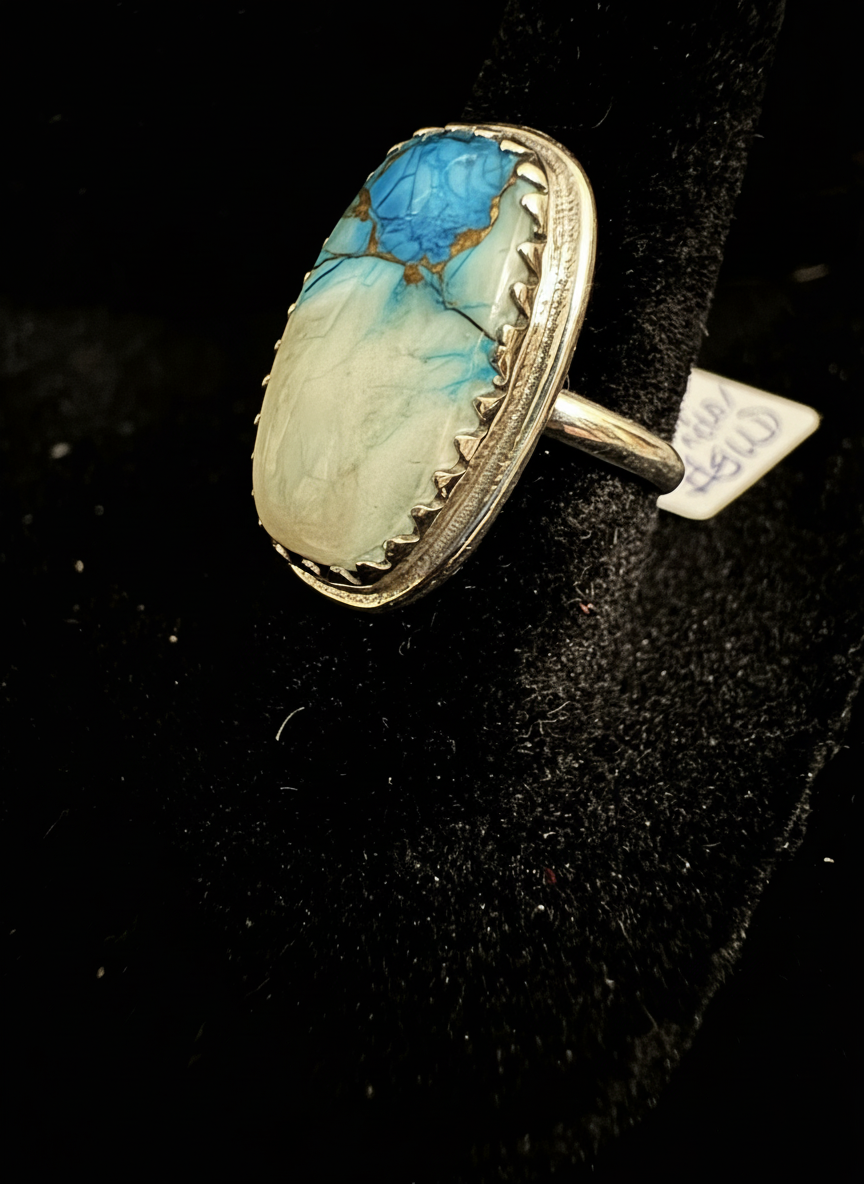 Petite blue moon turquoise stone set in Sterling silver. Adjustable size