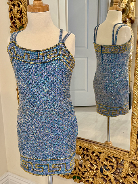 BSD522 BUTTERFLY HAND BEADED FULL SEQUIN LITTLE GIRLS DRESS