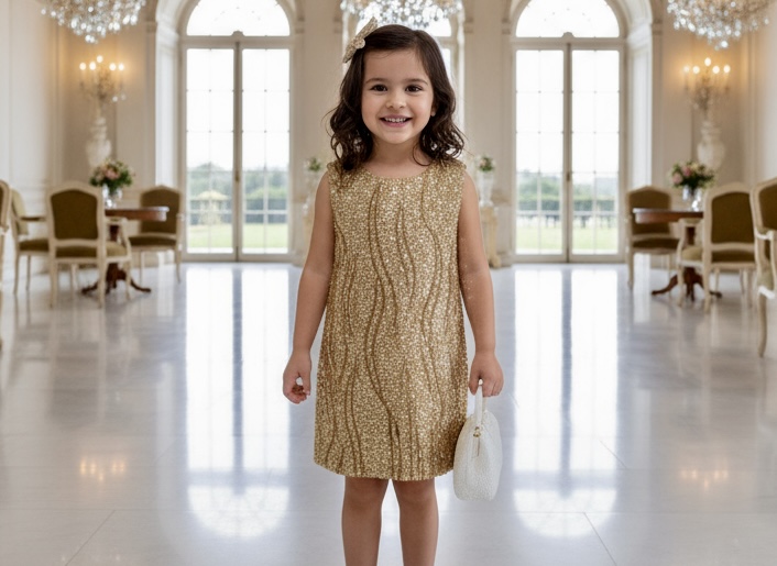 BEAUTIFUL HAND BEADED GOLD SWIRL DRESS