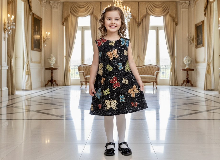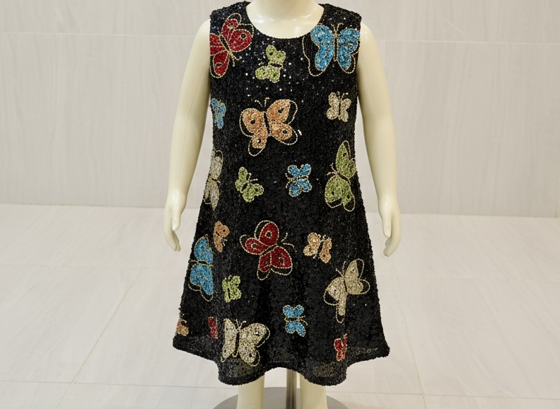 BEAUTIFUL HAND BEADED BLACK AND MULIT COLOR BUTTERFLY DRESS. VERY WELL MADE AND DURABLE!