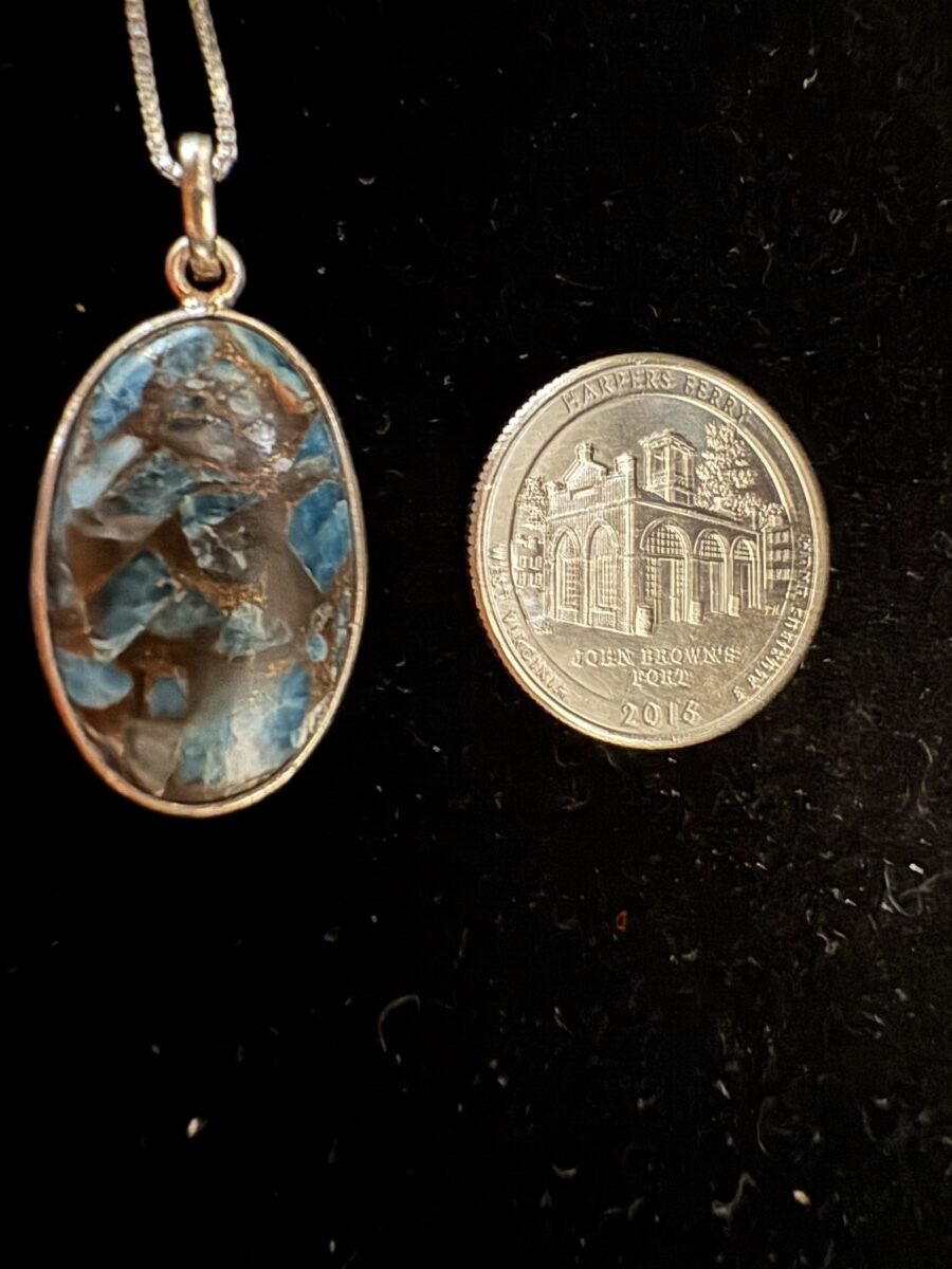 This is an adorable petite turquoise necklace set in a sleek sterling silver setting. 18 inch chain included