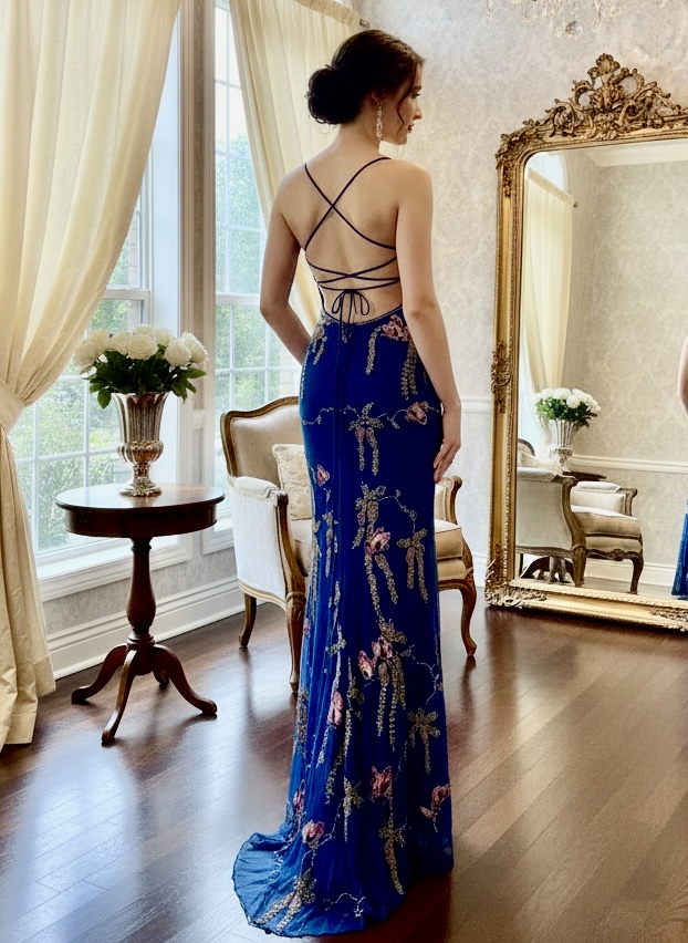 Beautiful hand embroidered and hand beaded long gown one of a kind. On stretch mesh for an easy fit. You will love this elegant well-made, intricate dress. Sure to receive many compliments. One only size small