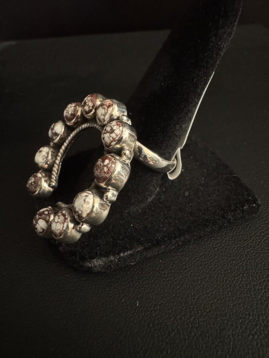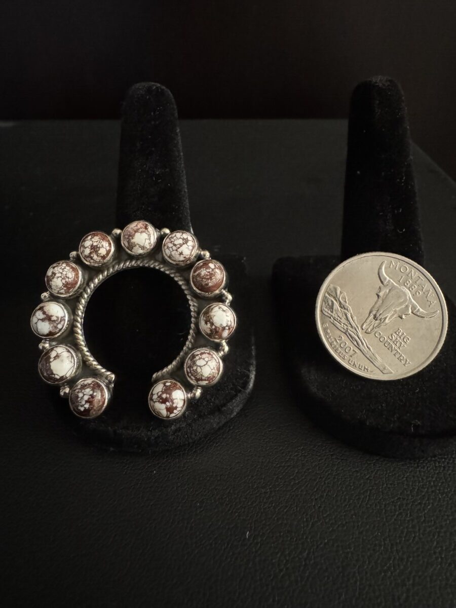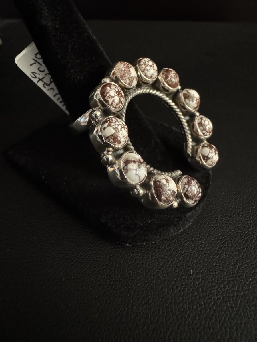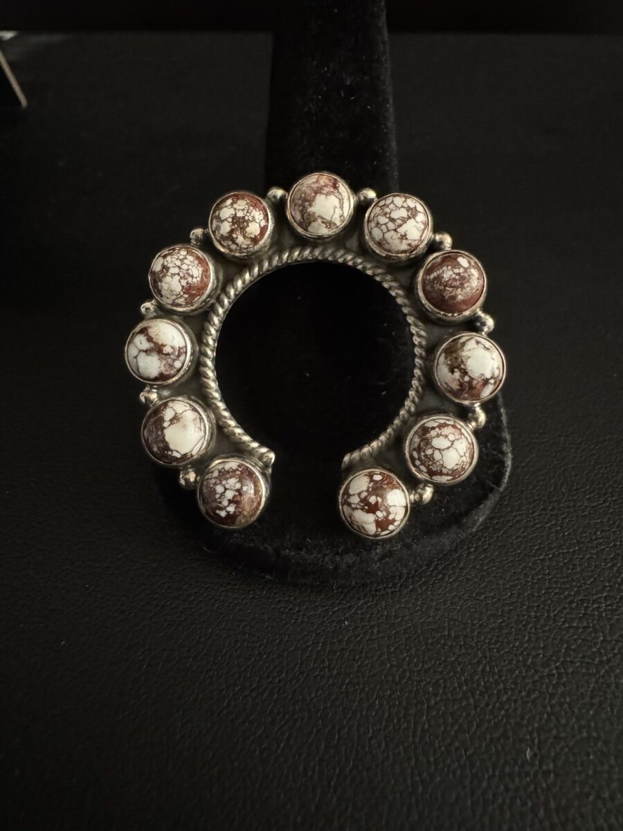 Elegant statement piece. This sterling silver and white buffalo turquoise ring is short to catch attention. It is stunning! Adjustable size
