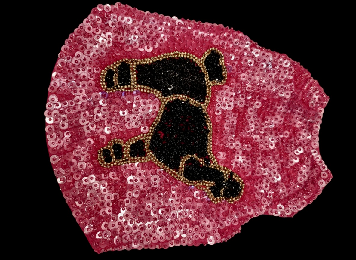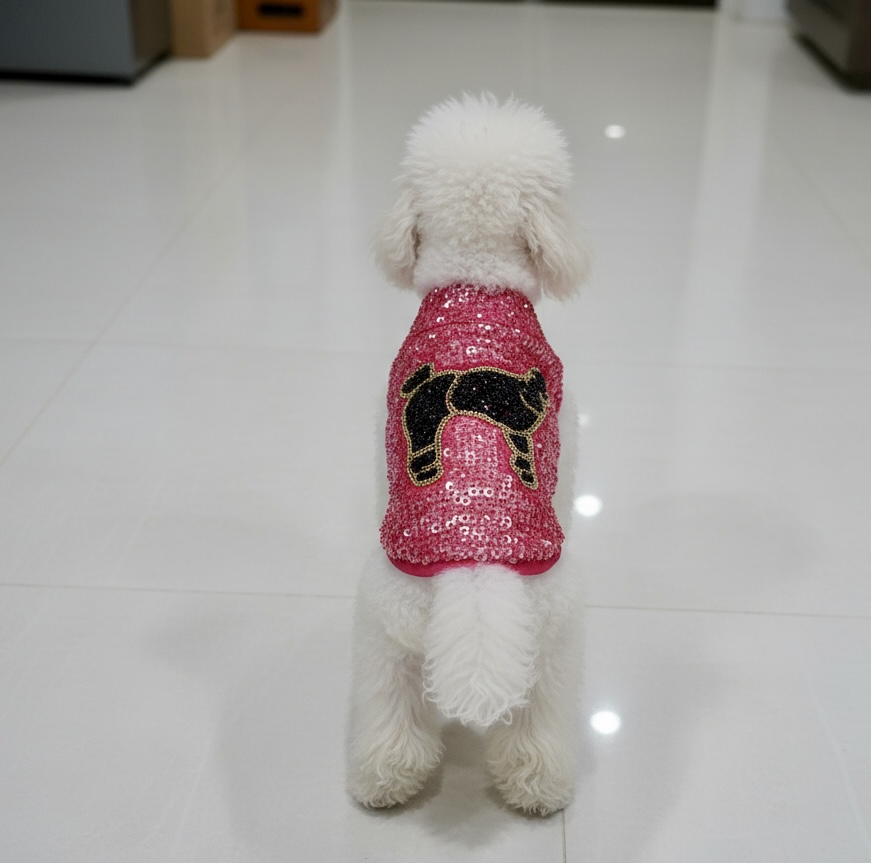 Adorable fuchsia hand beaded dog sweater. Featuring a hand beaded black Poodle. Two size extra small and two size small available