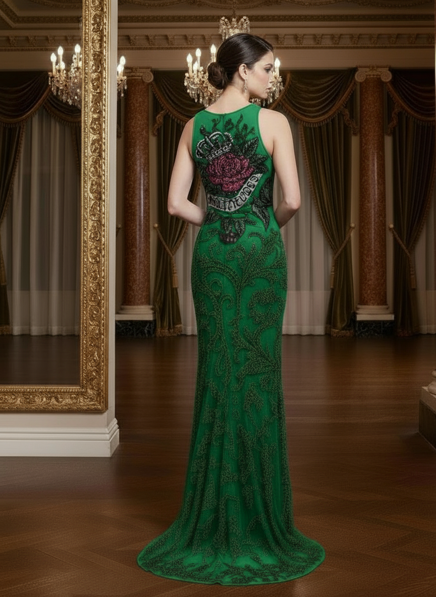 LONG HAND BEADED DRESS ON POWER MESH FABRIC