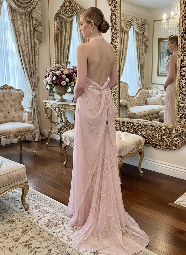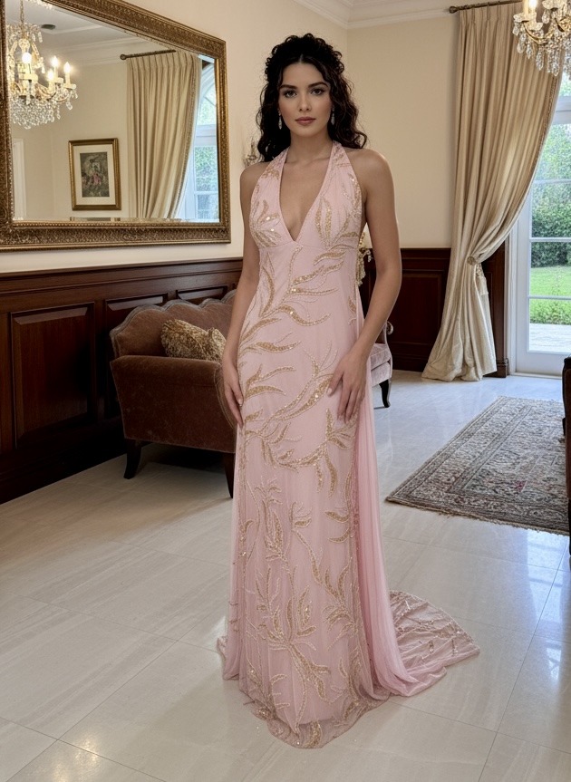 LONG HAND BEADED DRESS ON POWER MESH FABRIC