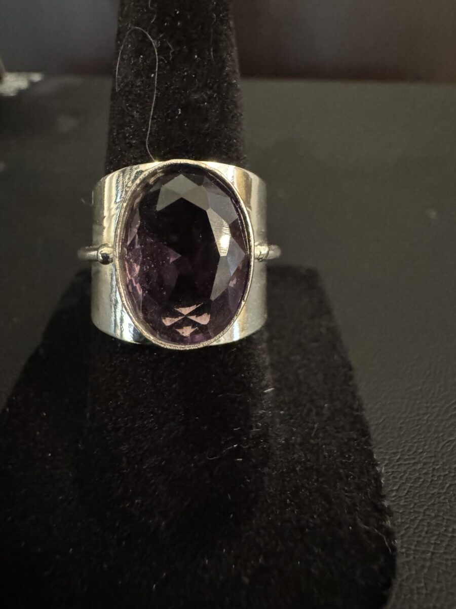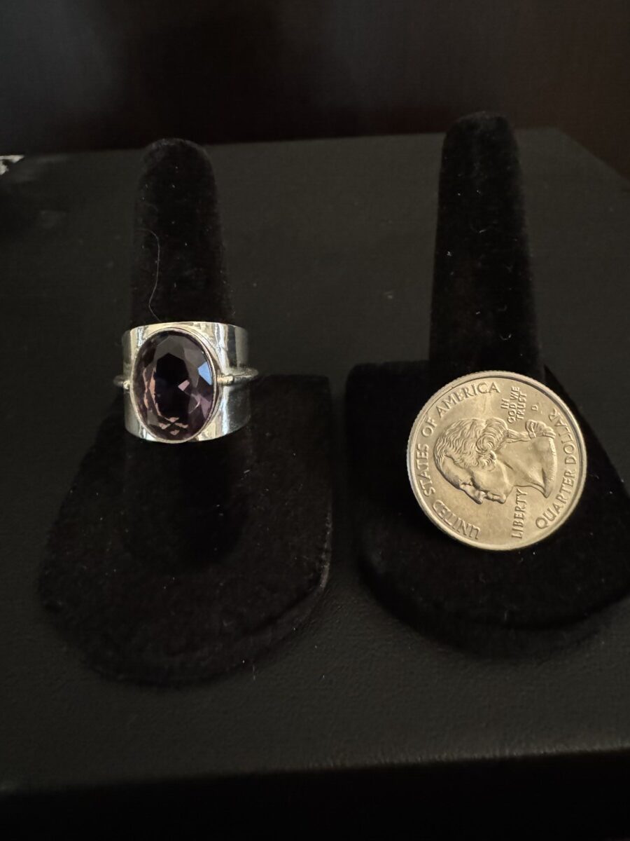 Modern amethyst and sterling silver ring quantity