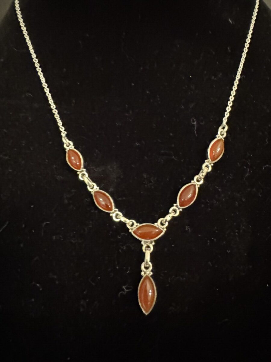 Beautiful red cornelian agate stone set in a beautiful sterling silver setting and chain. Absolutely gorgeous.