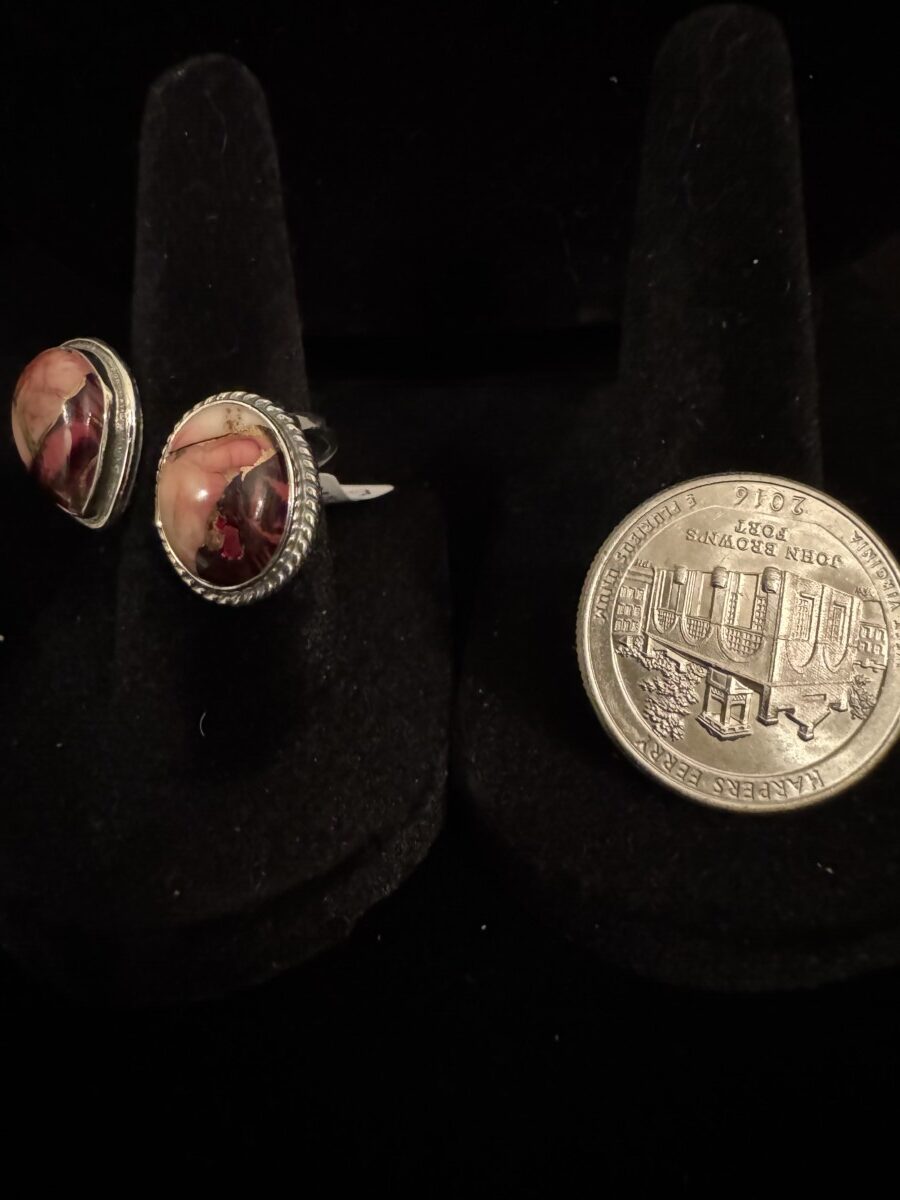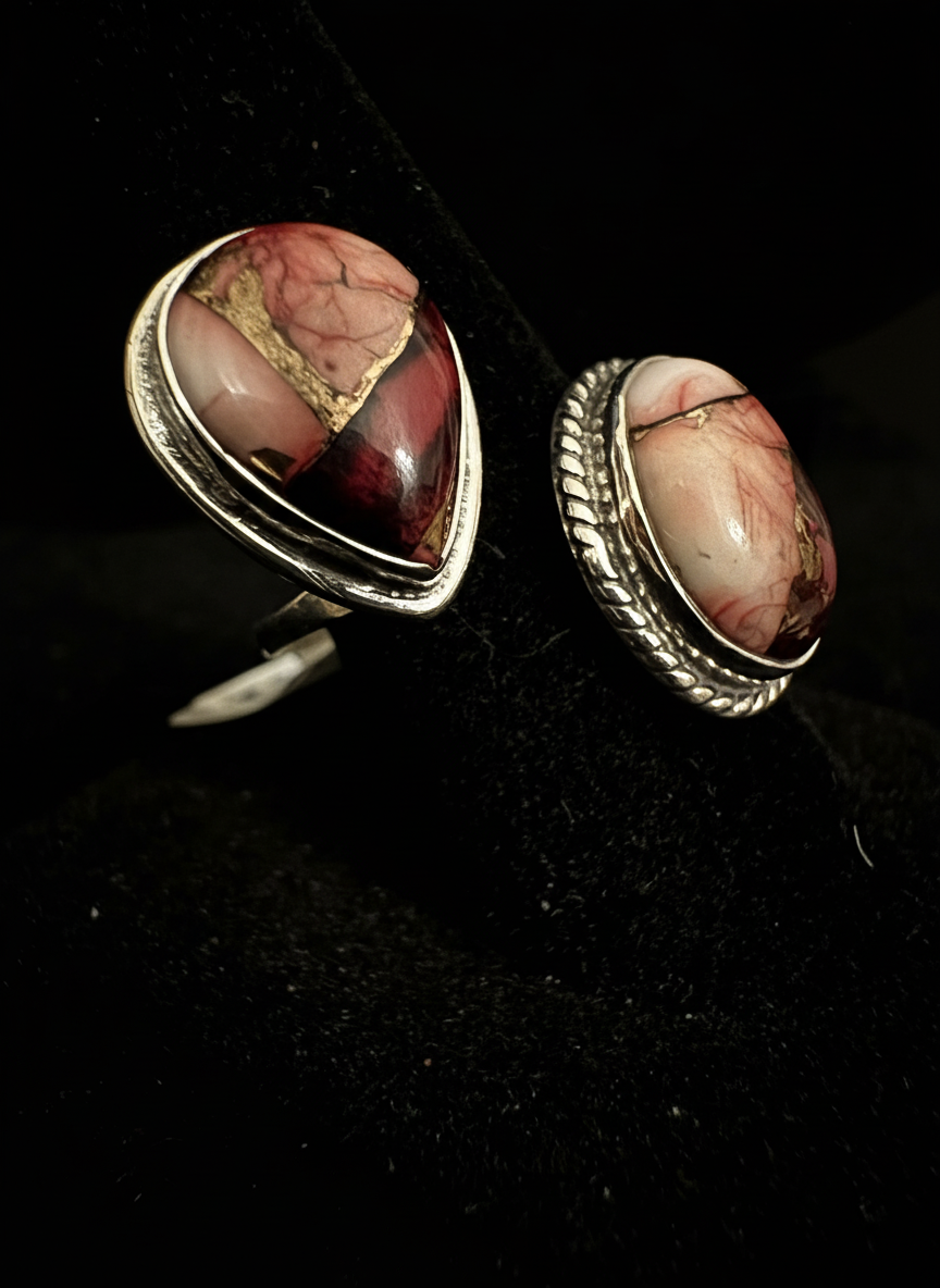 Beautiful red Dahlia and Sterling silver bypassing. Very unusual. Size 8