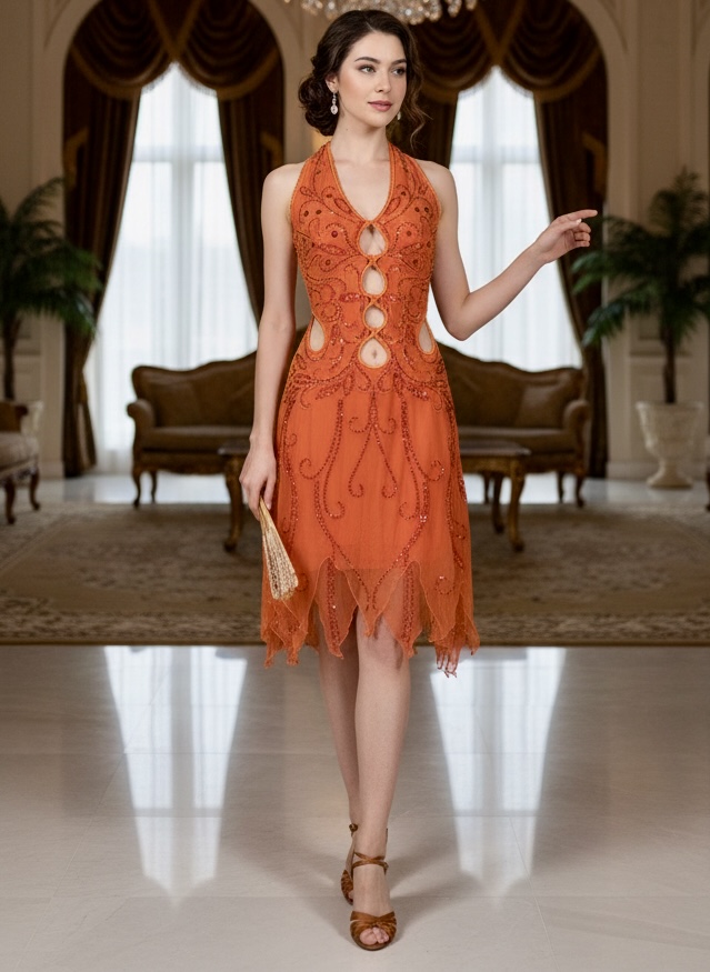 Hi Beautiful hand, beaded, sexy, and sophisticated short dress. This style is very unusual and you will get many compliments . made on stretch mesh for an easy fit. One only size small