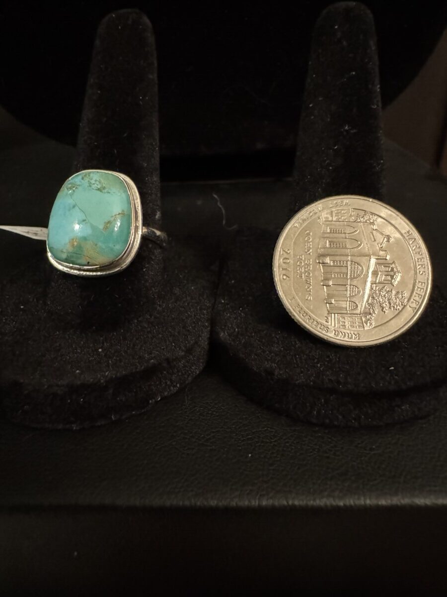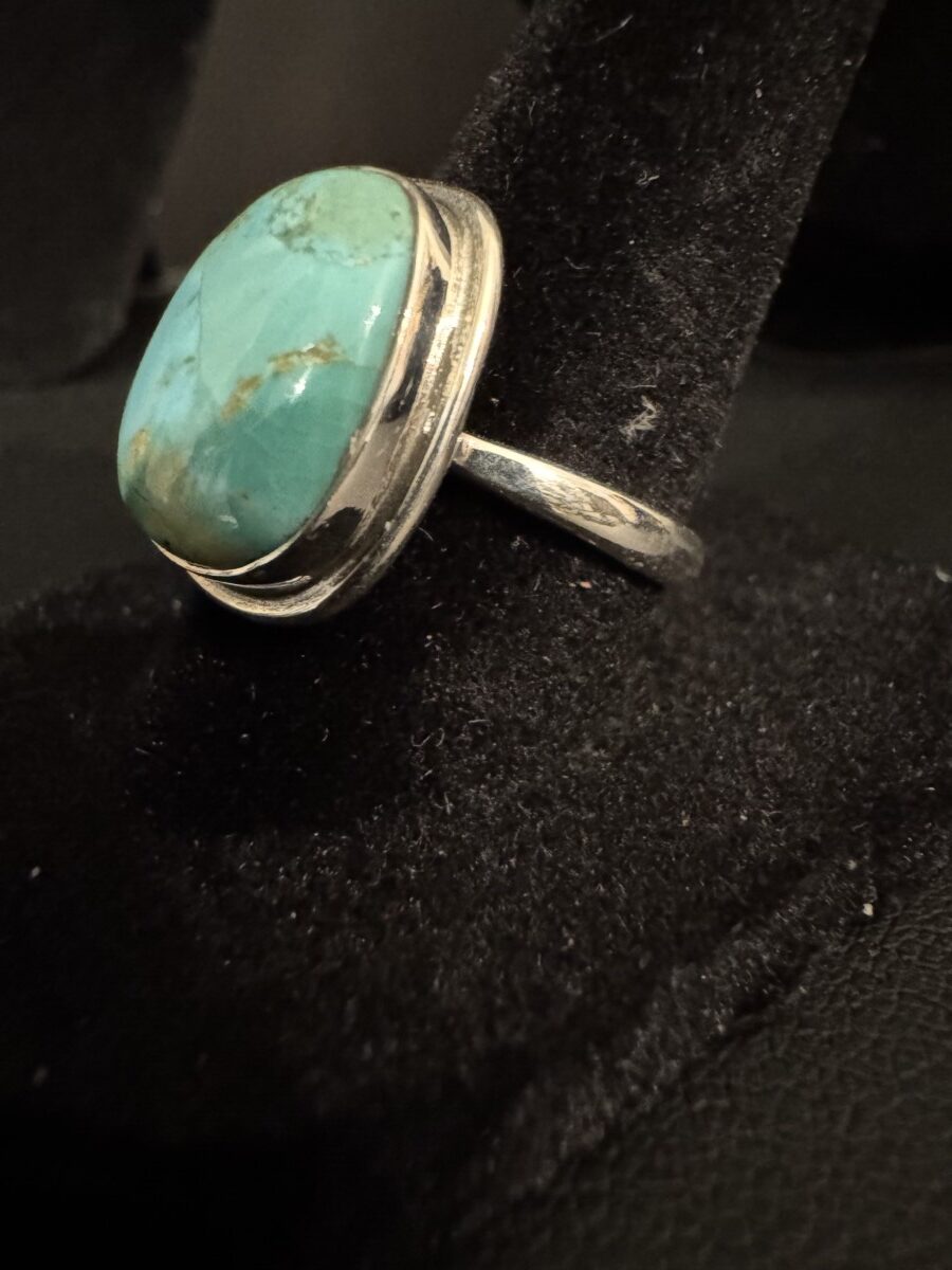 This is a beautiful, genuine, turquoise and sterling silver ring. Not too big and not too small just ripe! Adjustable size