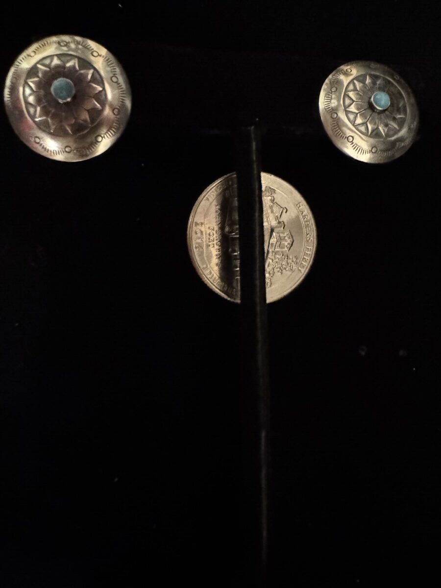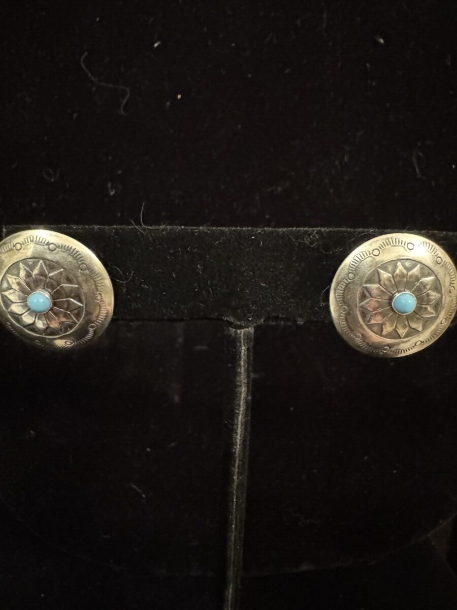 Beautiful native sterling silver earrings with a pop of turquoise in the center. Pierced ears. You will love them