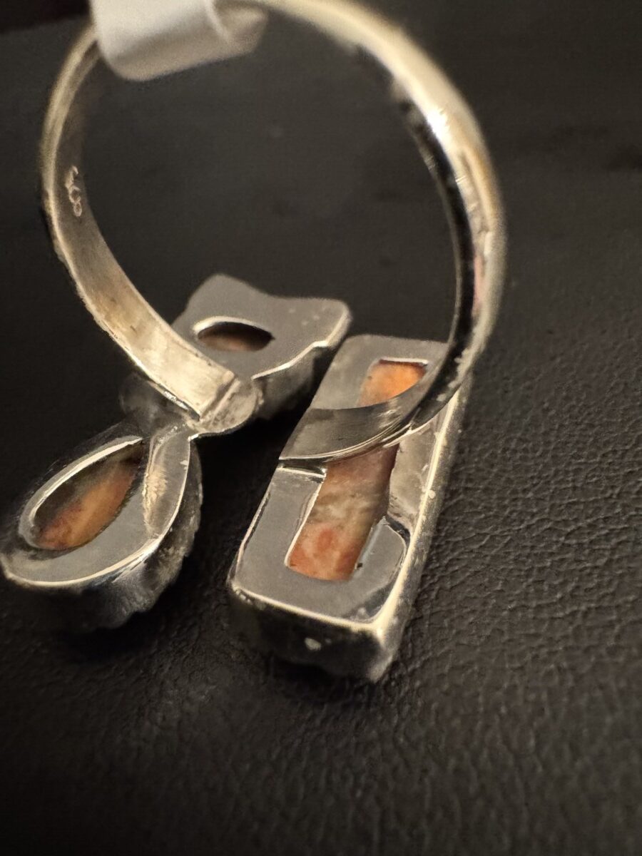 This is a very unusual ring featuring desert Jasper. The bypass ring is in the shape of a cat and a rectangular stone. You will receive many compliments on this lovely ring. Size 8, but it can be sized by a jeweler.