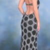 LONG HAND BEADED DRESS WITH CIRCLE PATTERN ON POWER MESH FABRIC WITH RHINESTONE CLASP