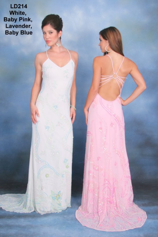 LONG HAND BEADED DRESS WITH LOW BACK ON POWER MESH FABRIC