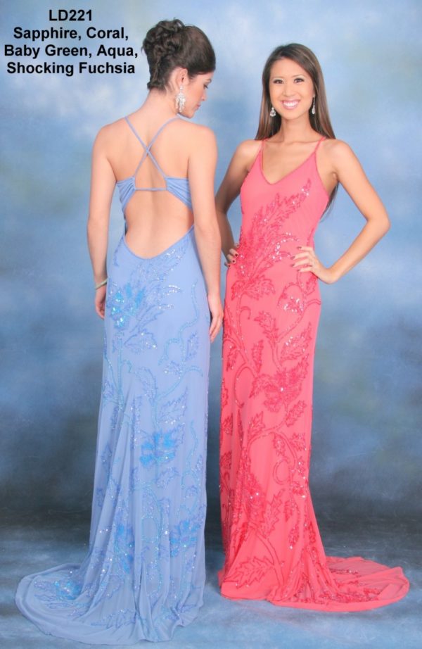 LONG HAND BEADED DRESS WITH LOW BACK ON POWER MESH FABRIC
